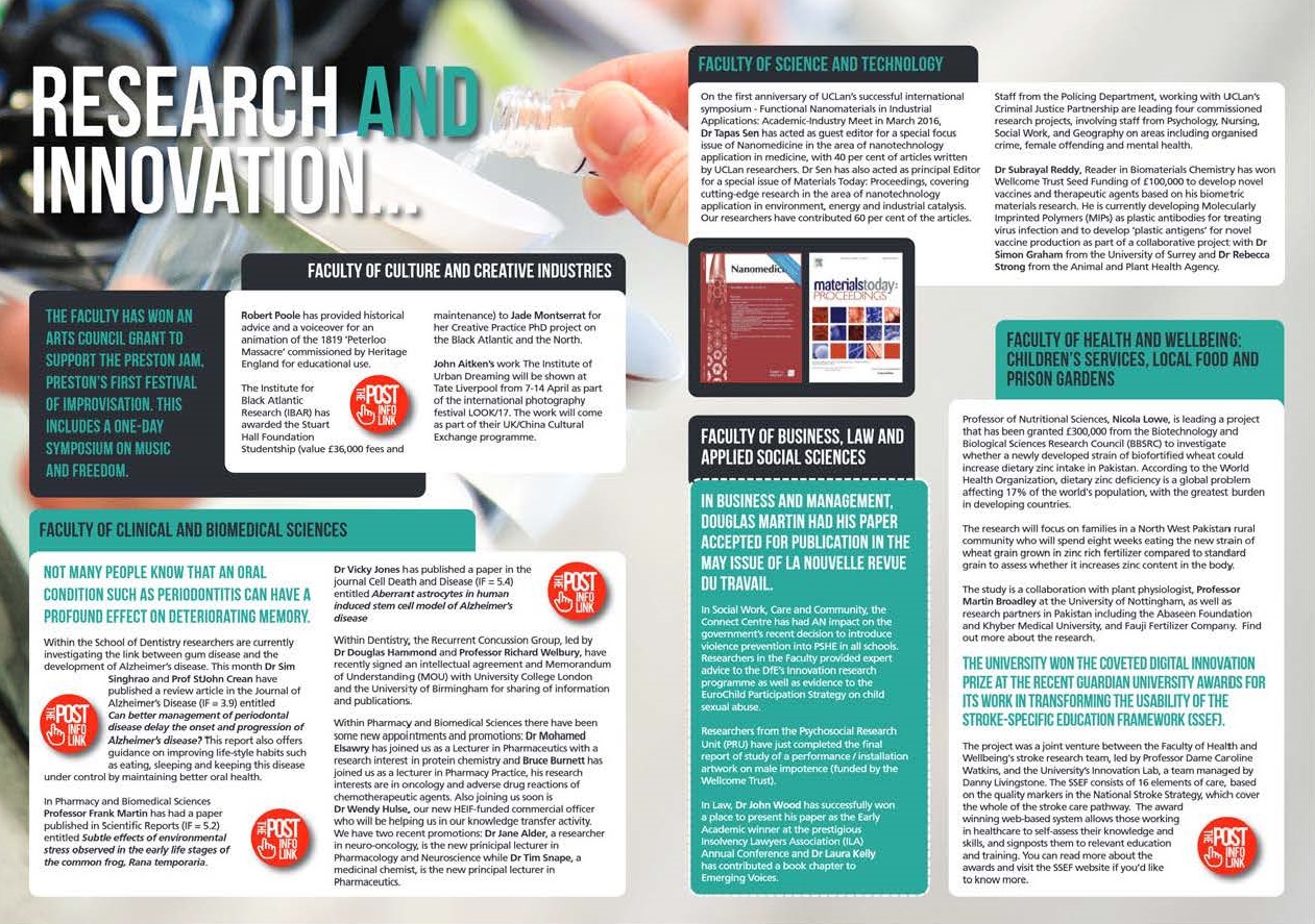 Group’s research has been highlighted in UCLan’s newletter (Post 22 issue, April 2017)